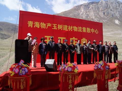 省玉樹地震災(zāi)后重建現(xiàn)場指揮部指揮長、副省長馬順清宣布建材物流集散中心正式開工并講話。省政府副秘書長巨偉、省經(jīng)委、省城鄉(xiāng)住房建設(shè)廳、西寧市政府、玉樹州政府相關(guān)部門、玉樹縣有關(guān)負(fù)責(zé)同志,省物產(chǎn)集團(tuán)總經(jīng)理王玉輝、黨委書記白家林、副總經(jīng)理物產(chǎn)化工公司董事長耿保平等參加了開工儀式。